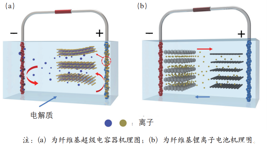 近年来,与传统的超级电容器类似,纤维型超级电容器可通过电极表面或内部孔隙电解质离子的可逆吸附的电化学双电层电容储存电能,以及通过表面法拉第氧化还原反应或电极表面的离子嵌入/脱出来存储赝电容。目前,现有的柔性储能装置包括超级电容器、锂离子电池、锂硫电池、锂空电池、锌空电池和铝空电池等。
