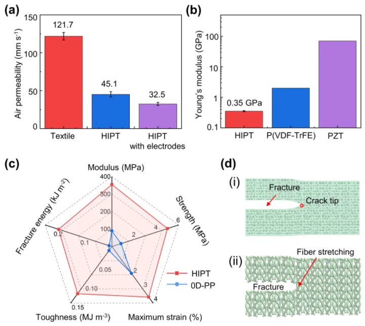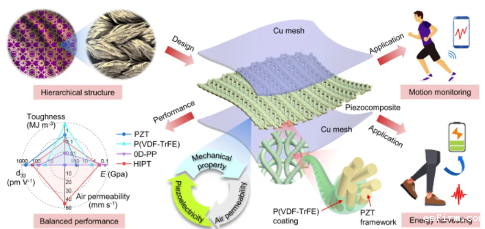 该研究设计多级结构和制造功能性压电陶瓷织物的概念为提高传统压电材料的压电性能提供了新的思路,同时,其更注重透气性、压电性、柔性和韧性方面均衡性的策略进一步促进了功能材料在可穿戴设备和柔性电子产品中的应用。