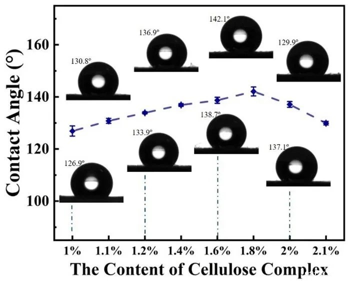纸用防水剂中疏水片状纤维素基含量对静态接触角的影响