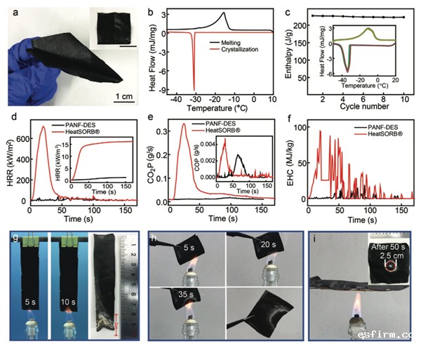 图3.PANF-DES主客体复合薄膜的相变行为和阻燃性能