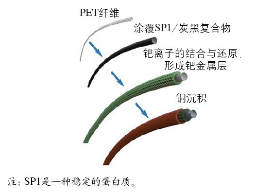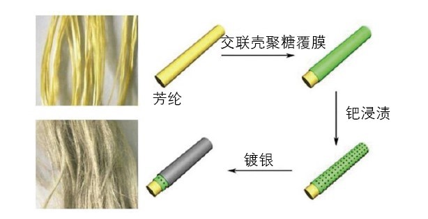图11 在纤维上化学电镀金属示意图