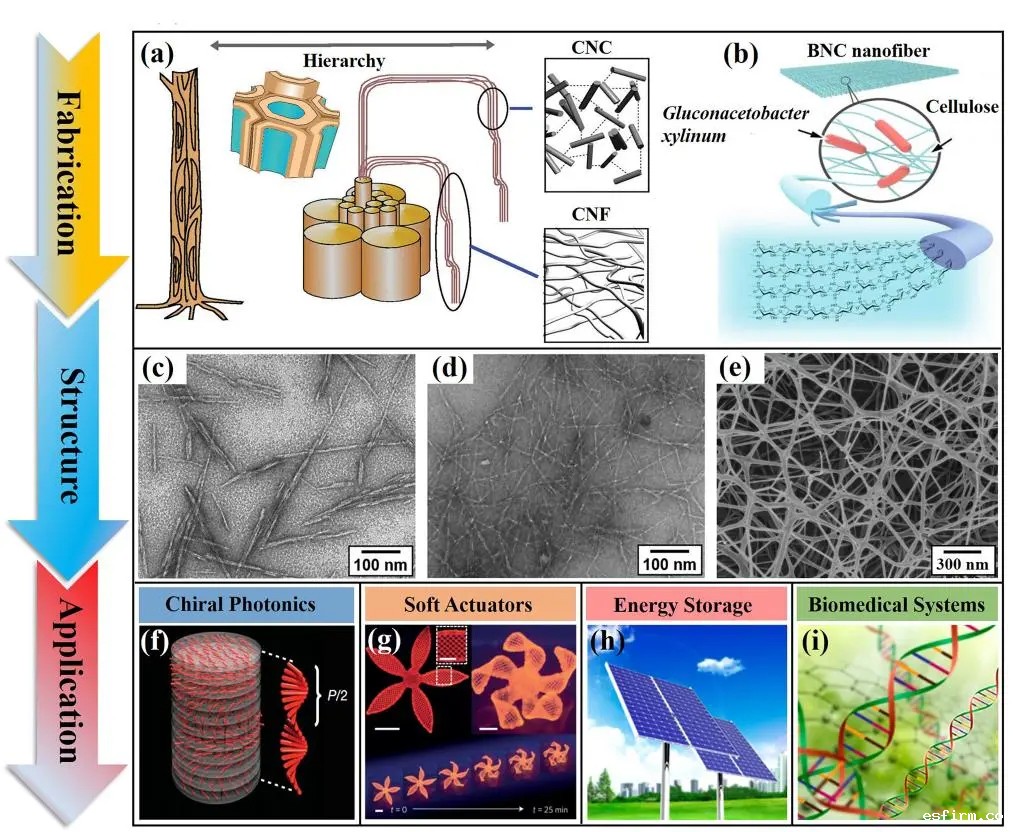 图1. 纳米纤维素的来源、微观结构及其潜在应用