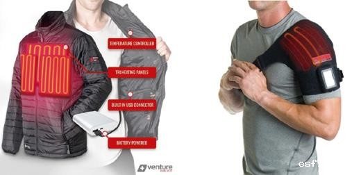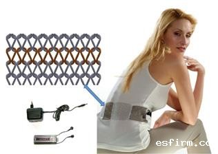 目前,发热服装在市场上的应用较为广泛。如,Ardica发热夹克使用锂离子电池为导电纤维供电加热,能保持穿戴者温暖 3 ~ 8 h(视加热温度高低);warmX发热内衣采用银纤维加热系统,锂离子充电电池可供使用2.5 ~ 5.5 h(视加热温度高低),充电时间约需3 h;此外,美国Columbia(哥伦比亚)的发热外衣、Venture的发热外套及加热肩部治疗垫、Yosoo可调式膝盖加热垫等产品也采用不同种类的导电纤维发热。这些产品的共同特点是都装配有加热垫、自动30 min安全计时器和个性化温度控制器。