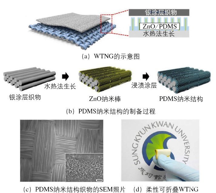压电能量收集通过压电材料将结构振动转换为电输出进而进行收集,引起压电材料不平衡变形的可以是弯曲、压缩、拉应力和应变等。可用于能量收集纺织品的压电材料包括压电陶瓷、压电聚合物(如聚偏氟乙烯)、碳纳米管等。Piezo Films Kureha开创了第一个压电薄膜的商业化应用,其开发的KF Piezo利用一种独特的结晶聚偏氟乙烯(KF聚合物),具有卓越的压电性能。此外,宾夕法尼亚州卡内基梅隆大学发明了压电能量收集鞋垫Solepower,该可拆开鞋垫内部有一个压电能量收集系统,允许电力储存在鞋外的电池组中,鞋垫步行 1 h的电量可提供手机充电2.5 h。