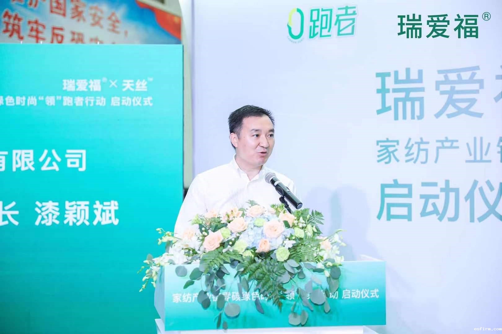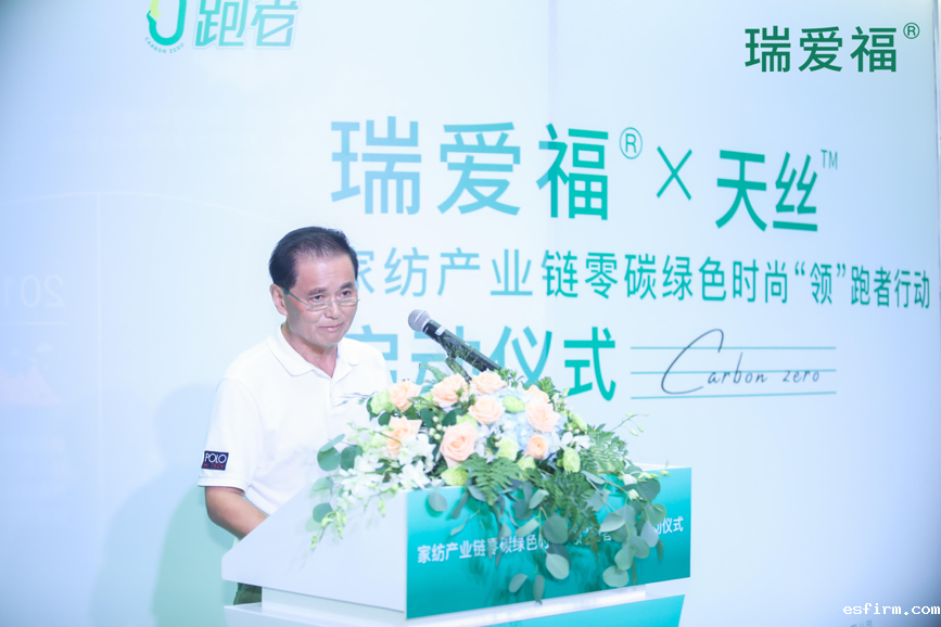 江苏瑞爱福纺织科技有限公司董事长胡文彪在发言时谈到,瑞爱福一直致力于家纺绿色高端面料的研发,于2014年与奥地利兰精集团形成战略合作伙伴关系,此次与兰精携手推出零碳天丝TM面料,旨在发挥国际家纺产业集聚优势,将低碳环保理念深度融入家纺产业供应链,不断壮大零碳绿色时尚“领”跑者队伍,做家纺产业可持续发展的有力推进者与践行者,从产业链绿色可持续发展的角度,打造更多绿色环保的优质产品,将可持续发展时尚理念传递给消费者。