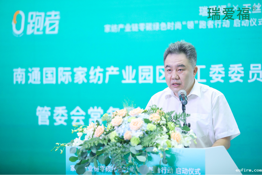 南通家纺园区党工委委员、管委会常务副主任刘鹏在致辞中表示,“十四五”是实现2030年前碳达峰的关键时期,也是南通家纺产业加快调整产业链布局、加速转型升级的重要阶段,需要政府、企业、市场等各单元、各环节同心协力、同频共振、同向发力,以全面绿色转型为引领,以绿色低碳发展为关键,共同推动家纺产业向着全产业链零碳绿色时尚的赛道迈进。家纺企业要积极响应国家号召,强化责任担当;加强绿色低碳科技创新,数字化赋能转型发展;加快企业绿色转型,共筑绿色生态链;构建专业分工、相互协作的行业生态。
