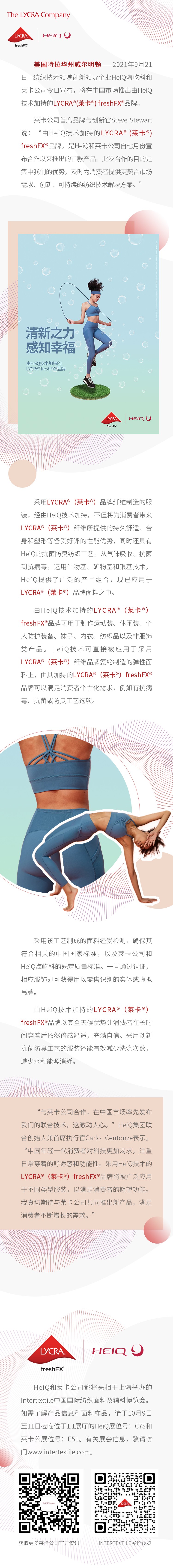 HeiQ海屹科和莱卡公司合作,为消费者提供更契合市场需求的纺织技术解决方案。