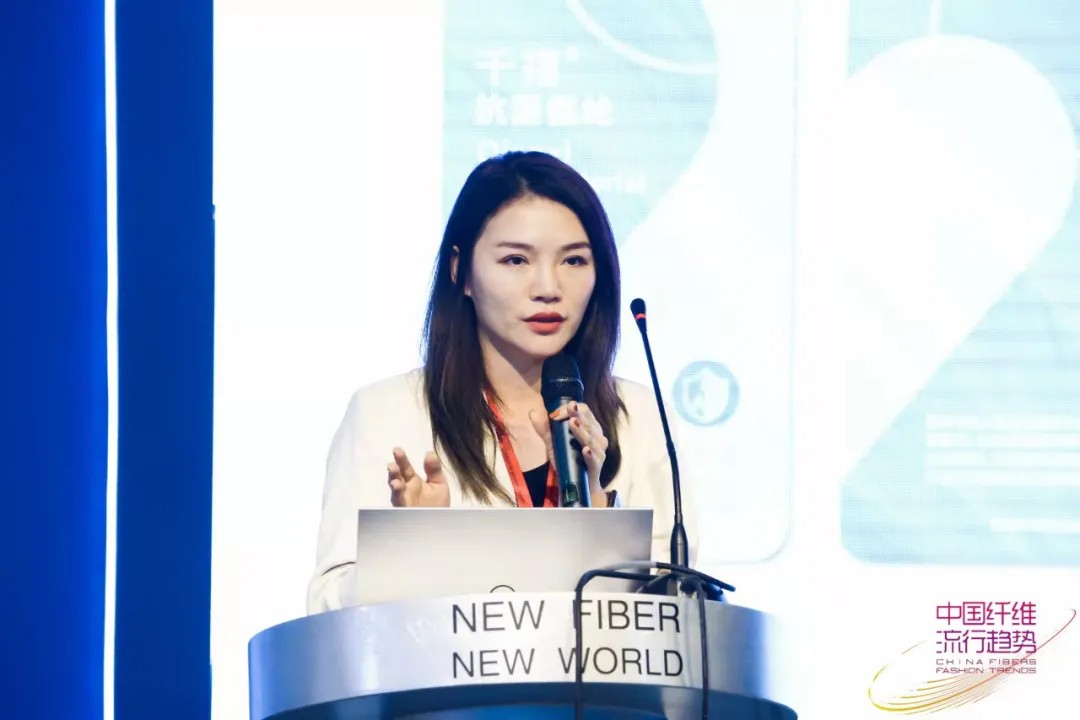 上海三枪(集团)有限公司技术中心主任兼设计总监蒋圣敏就千禧®抗菌氨纶在短纤内衣应用上的开发进行了分享。抗菌几乎是当下内衣产品必备功能之一。三枪用9.7%的千禧®抗菌氨纶,搭配棉纤维和天丝纤维,开发了一款可以用于内衣裤的抗菌针织面料。该面料无需经过额外的抗菌后整理,就可达到AAA级的抗菌效果。同时,随着内衣中氨纶成分的逐渐增加,氨纶含量在10%左右的面料在三枪内衣产品中的占比也越来越高,蒋圣敏表示,未来千禧®抗菌氨纶将有机会大量地用于三枪内衣产品开发。