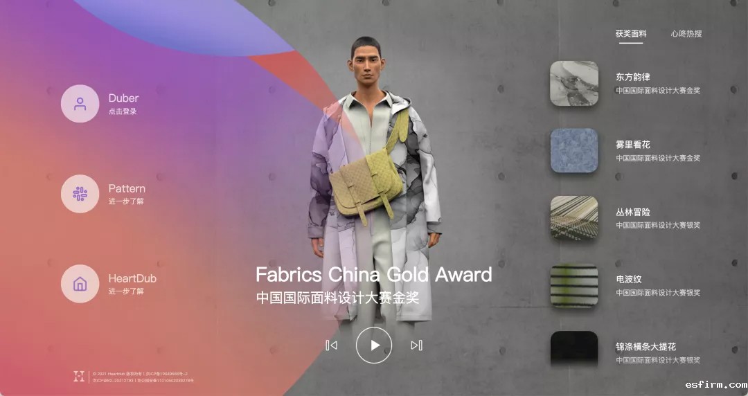 10月9—11日,在2021中国国际纺织面料及辅料(秋冬)博览会(以下简称“intertextile面辅料展”)的“中国纺织面料流行趋势时尚概念区”中,“2021中国国际面料设计大赛”获奖面料产品的数字化展示视频吸引了众多观众驻足。视频中展示了25款超高精度3D数字面料与数字服装,清晰立体的肌理与逼真的效果让人难辨虚实。这是由伟德客户端下载平台官网与北京心咚网络科技有限公司再度携手打造的超高精度3D数字面料展示平台,展现数字科技在商业形态进化、价值增长模式、低碳创新转型的巨大潜力与应用前景。