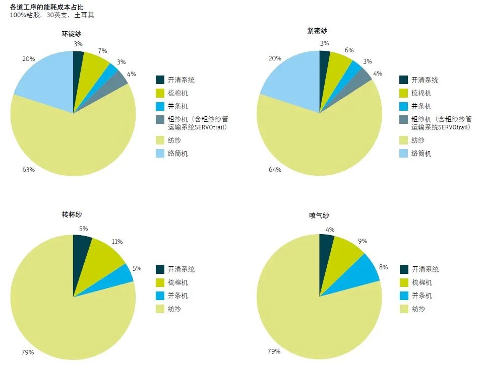 图1:不论选用何种纺纱技术,后纺都是纺纱中能耗最高的一个环节。