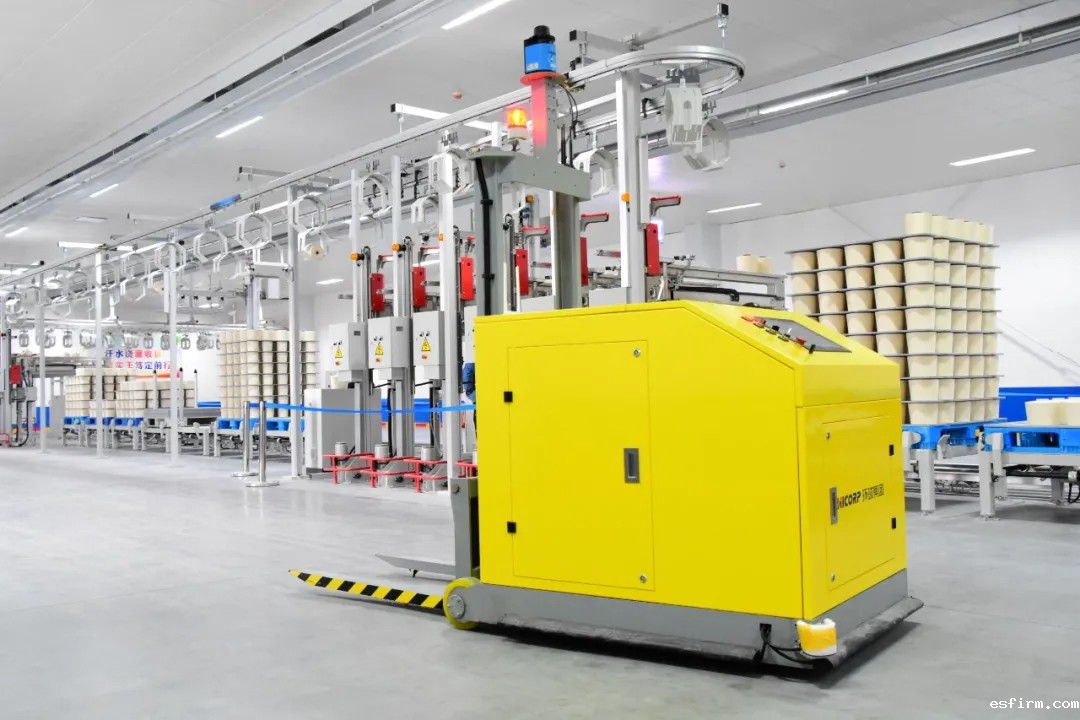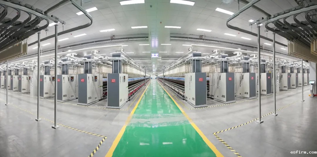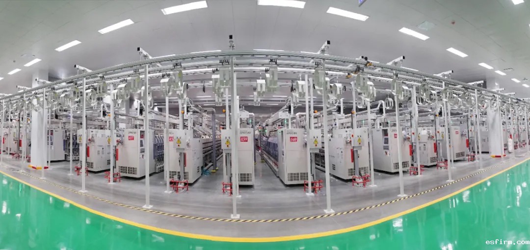 在纱线生产环节,从粗纱到产品入库全自动化运输,自动包装,整个流程无任何人工直接参与。