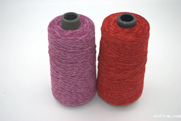 雪尼尔纱是一种形态结构较为特殊的花式纱,一般是用两根股线做芯线,通过加捻将羽纱夹在中间纺制而成。雪尼尔纱由芯线和断丝绒纤维构成,断丝绒纤维在外表形成毛绒效果,芯线则起到固结、保护断丝绒纤维,并保持产品强度的作用。芯线一般为强度较好的股线,如腈纶线、涤纶线,也有用捻度较大的棉线作芯线的,断丝绒材料以柔软、吸散湿性较好的粘胶纤维、棉纤维为主,也可采用蓬松、柔软的腈纶。