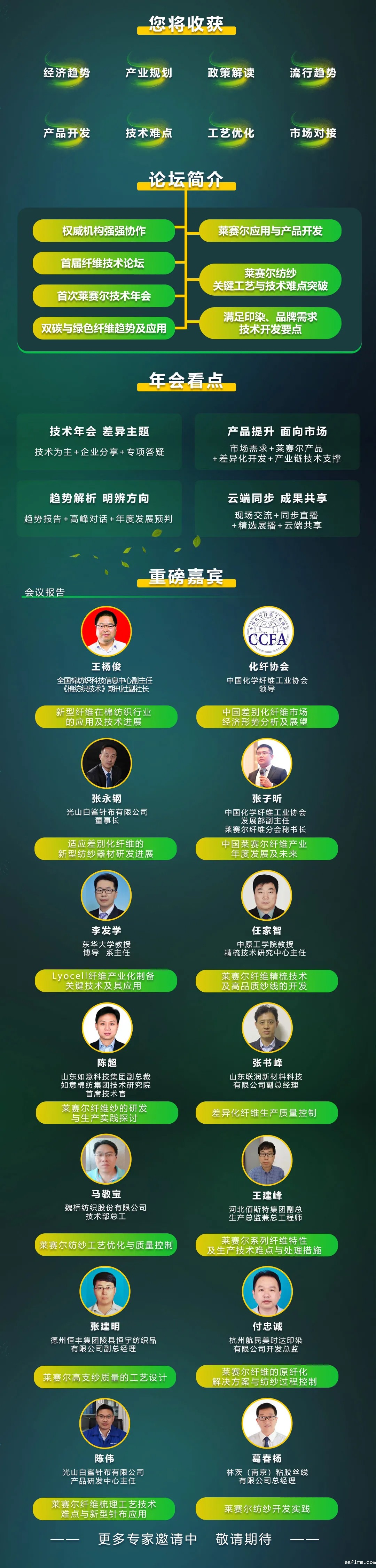 由于此次会期及会址调整,影响到的企业参会,嘉宾行程调整等,我们深表歉意。顶尖专家、前沿技术、深入交流,2021中国新型纤维应用技术论坛暨首届莱赛尔应用技术年会期待与您相约山东德州!