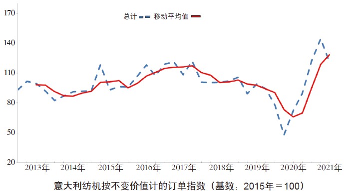 日前, 意大利纺机制造商协会(ACIMIT)发表了2021年 7 — 9 月纺机订单指数。据悉,该指数比上年同期激增了66%。订单指数为119.8点(2015年基数=100)。意大利国内和国外市场均呈增长态势,与2020年同期相比,意大利国内订单激增了130%,国外订单增长了54%。