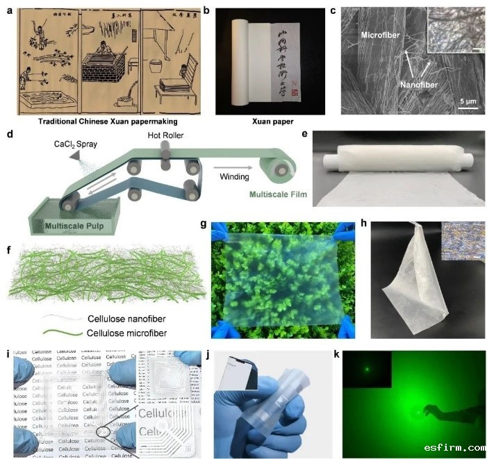 近日,中国科学技术大学研究团队受宣纸制造工艺和结构的启发,通过对传统宣纸结构进行表征,探究了其高强度、高韧性的微观机理,研制出了一种具有多尺度结构的高雾度透明薄膜。这种薄膜有望成为柔性透明电子器件基底材料的理想选择。
