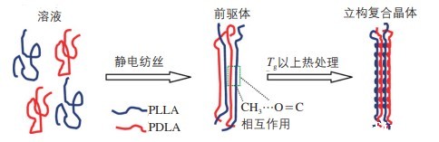 1987年IKADA等报道了具有相反手性的左旋聚乳酸(PLLA)与右旋聚乳酸(PDLA)分子间可以形成立构复合结构,具有该结构的PLA的熔点可提高约50℃,并且纤维的可生物降解性不会被破坏。