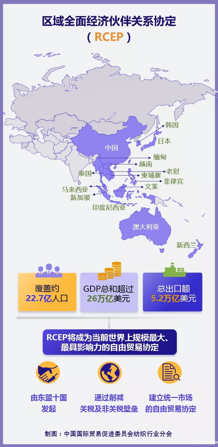 徐迎新表示,从贸易层面看,RCEP有利于纺织业降低出口成本,扩大出口利益。特别是日本作为我行业第四大出口市场,此次通过签署RCEP,我国与日本建立了新的自贸伙伴关系,这是我国首次与世界前十的经济体签署自贸协定,也是我国实施自由贸易区战略取得的重大历史性突破。
