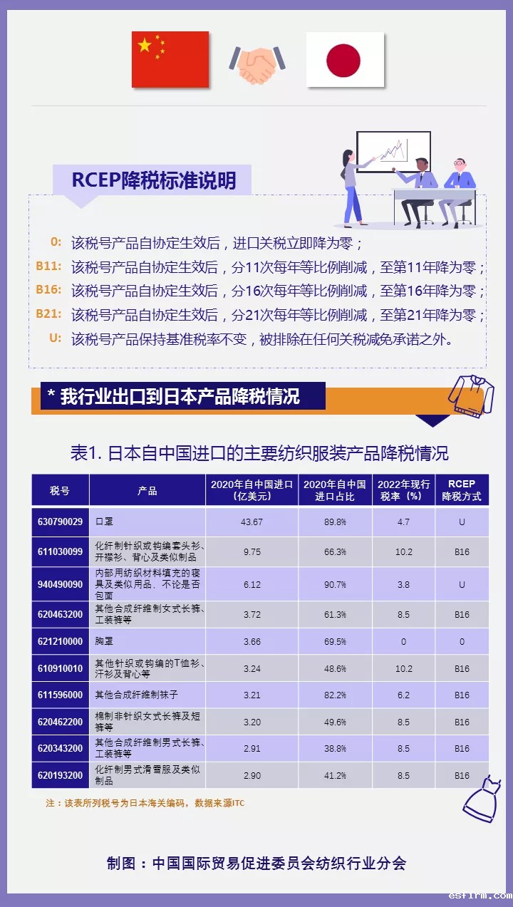 “协定生效后,关税逐年会降低直到降为零,而且涵盖的产品范围很广,99.3%的纺织类产品都涵盖了,对我们中国对日本的出口参与公平贸易竞争优势就显现出来了。我纺织行业对日出口规模有望在200亿美元基础上进一步提高。”