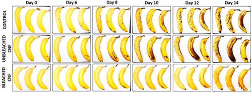 漂白和未漂白的胡萝卜CNF涂层对香蕉的保护效果(21℃ 、 60% RH)