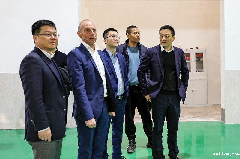 凤凰纺织总经理石成匡与特吕茨施勒总经理施博安等一行人参观高杂水刺6号线开机运行