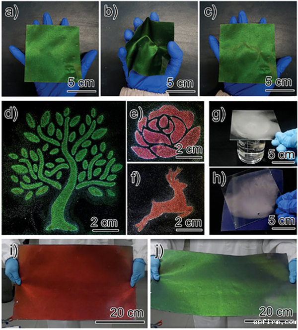 耐用性测试结果表明,当织物被水洗或洗衣机洗涤时,其颜色保持不变。当对PC改性织物进行更猛烈的操作,如刷洗和超声波处理时,其结构仍保留完好。借助掩膜,可以在该织物上轻松制作树木、花朵和鹿的PC图案。
