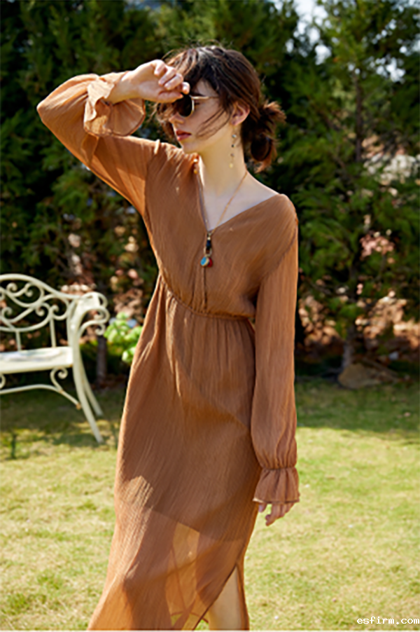 该面料轻薄柔软,舒适性好,极大地丰富了产品种类,提升了产品品质。而且,面料纹样美观新颖,是春夏休闲时尚女装面料的首选。同时,面料设计兼顾了产品的美观和实际生产中的稳定重现性,在保证产品外观褶皱效果的同时满足了断裂强力、撕破强力、缝线滑移、水洗缩率等内在品质指标。