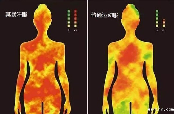 从原理来看,暴汗服是一种穿上之后可以让人体快速出汗的服装。期初,暴汗服通常选用PVC或PU涂层的聚酯纤维织物制成,随着工艺的改进和产品升级,现在的暴汗服一般由聚酯纤维面料(或腈纶面料)和纳米银金属涂层构成,运用银纳米膜的辐射在体表形成热循环与热反射,使运动产生的热量无法迅速散发,在这种情况下,人体为了保持恒定体温需要进一步加大排汗,从而实现“暴汗”。