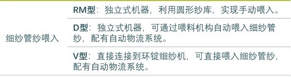 细纱管纱加工机器共有三种,每种代表了不同的自动化水平。