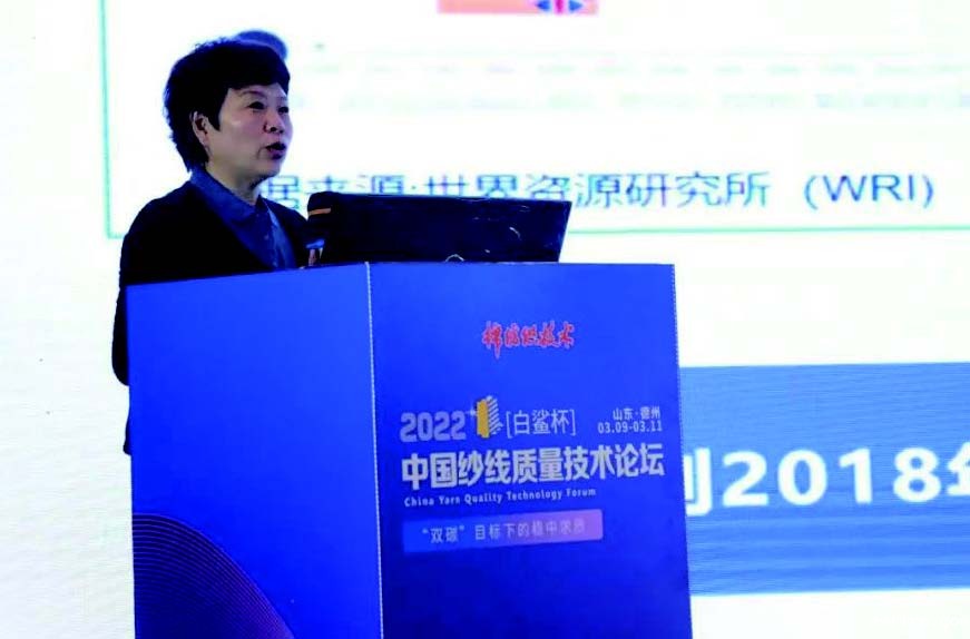 技术交流环节,朱北娜作了题为“‘双碳’目标下棉纺织行业的减排行动”的报告。她表示,纺织行业“十四五”发展纲要明确提出,到2025年,在行业生态文明建设和履行环境责任取得积极进展下,生产方式绿色转型成效显著,产业结构明显优化,绿色低碳循环发展水平明显提高。棉纺织行业要想实现减排行动与提质增效,通过技术进步推动“双碳”落地,要在研发及应用方面要进行清洁设计,使用新材料、环保化学品;在研发和开发方面要使用清洁设备、短流程化和工艺创新;在研发与降耗方面,要进行废水、废气、固废的治理。