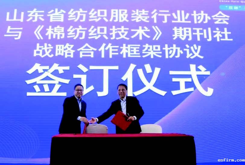 会议现场还举行了山东省纺织服装行业协会与《棉纺织技术》期刊社战略合作框架签约仪式,双方将就平台搭建、机构协同、项目集成等方面开展深入合作。