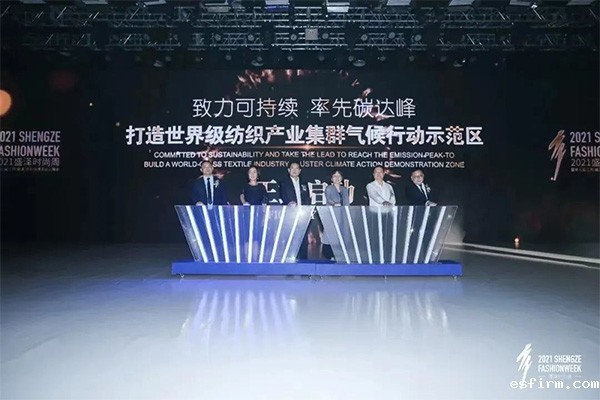 盛泽于2021年6月16日盛泽时尚周暨第九届江苏(盛泽)纺织品博览会云展会开幕式上正式发布了“盛泽纺织产业集群碳中和愿景”