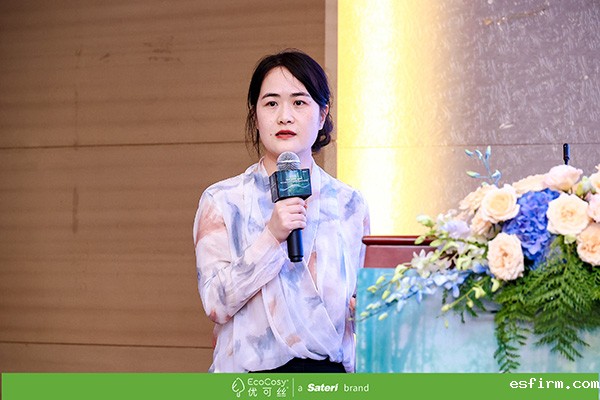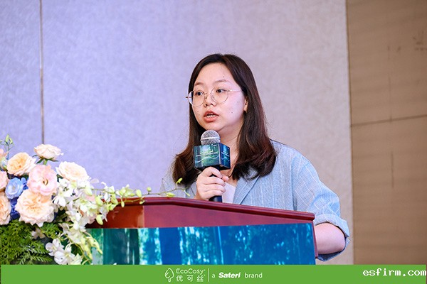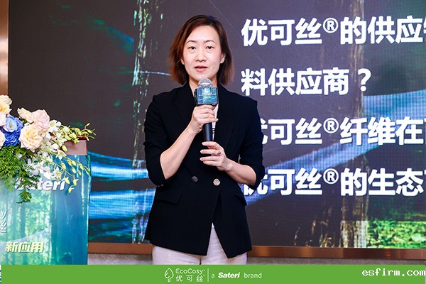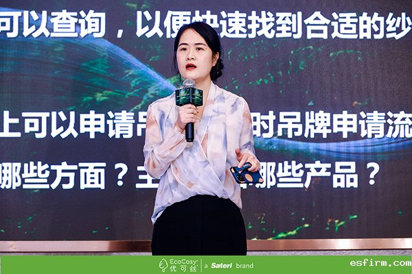 在产品创新报告分享环节,赛得利集团优可丝®市场经理颜荟以《赛得利绿色时尚从源开始》为题,分享了赛得利在“林-浆-纤一体化”布局上的全流程闭环清洁生产的产业链优势,详细介绍了以优可丝®BV、优可丝®安泰贝、优可丝®菁彩为代表的优可丝®系列纤维和循环再生纤维纤生代®,一系列完善的生态环保认证和透明供应链可追溯管理体系将推动再生纤维素纤维行业的绿色发展和低碳转型。
