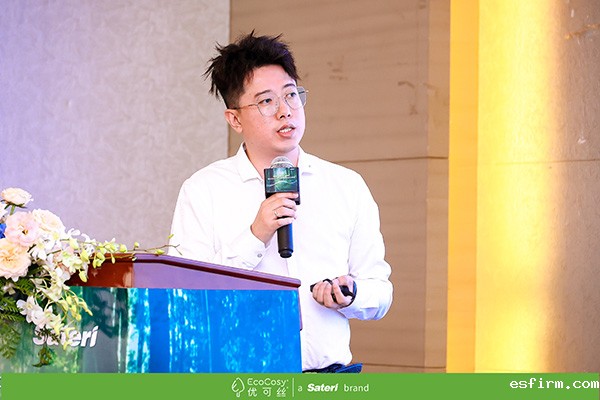 汕头市意大来制衣事业有限公司面料开发经营部经理洪梓乾分享了《意大莱优可丝®环保纤维产品创新》专题报告,“一千个消费者会践行一千种可持续时尚消费,安心感、新风尚、价值感、轻盈感等是关注可持续时尚消费的主要原因。”基于对消费需求的理解,意大莱开发了优可丝®与蚕丝结合的高性价比内搭产品系列,通过将两者的优势性能有机结合,打造出“轻、软、薄、滑、暖”不同的产品体验得到了消费者的一致认可。