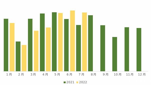 1~7月,进口羊毛总计17万吨,同比下滑3.9%,跌幅进一步收窄。5月以来,月进口羊毛数量明显恢复,6月、7月单月进口量同比有明显增长。