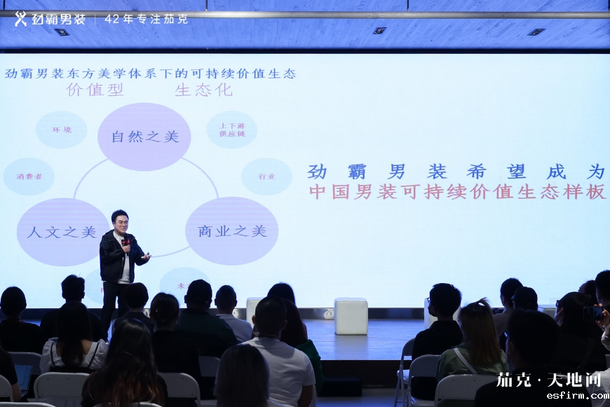 当今男装行业的可持续命题,是在时代市场和消费需求背景下,对美学文化、人文精神、产品实力等等方面的共同发问。正如中国服装设计师协会专职副主席杨健在致辞中所说:“近年来中国时尚产业已经充分认识到可持续时尚的价值。而本次的论坛,劲霸男装提出的可持续价值生态,则把我们的思维触角从一个自然生态的单点带入了一个糅合人文美学、价值观、经济因子、消费选择等等更为立体、饱满的体系化结构,更具长期主义发展深远意义的话题维度。这也充分展现了一个有着42年发展历史的中国高端商务休闲男装品牌的思考深度与高度,以文化自信为定力,以创意设计为核心,以可持续发展为导向,以品牌建设为带动,实现协同价值。我们也为有这样的中国品牌而感到自信和骄傲。相信中国时尚和中国服装产业在不久的未来,将东方文化内涵和生活美学融汇当代生活方式,用产品和设计说话,以更加充沛的文化自信走出自己专属的价值型、体系化的可持续发展道路,和世界对话,引领市场,引领消费。”