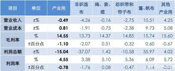 经济效益方面,1-7月产业用纺织品行业规模以上企业的营业收入与利润总额分别同比下降0.5%和15.0%,利润率为4.6%,同比下降0.8个百分点。分领域看,1-7月非织造布规模以上企业的营业收入和利润总额分别同比下降4.3%和37.1%,利润率为3.4%,同比下降1.8个百分点;绳、索、缆规模以上企业的营业收入下降0.2%,利润总额同比增长1.4%,利润率为5.1%,同比增长0.1个百分点;纺织带、帘子布规模以上企业的营业收入和利润总额分别同比下降2.8%和10.6%,利润率为5.4%,同比下降0.5个百分点;篷、帆布规模以上企业的营业收入和利润总额分别同比增长10.5%和36.0%,6.1%的利润率为行业最高水平;过滤、土工用纺织品所在的其他产业用纺织品规模以上企业的营业收入和利润总额分别同比增长4.3%和4.0%,利润率为5.7%,与2021年同期基本持平。