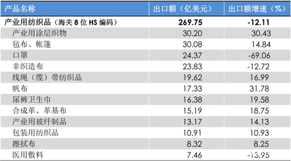 注:自2022年1月1日起,产业用纺织品行业中部分商品海关编码有所调整,由于缺少同口径同比数据,故本期发布的行业进出口同比增速数据仅供参考。
