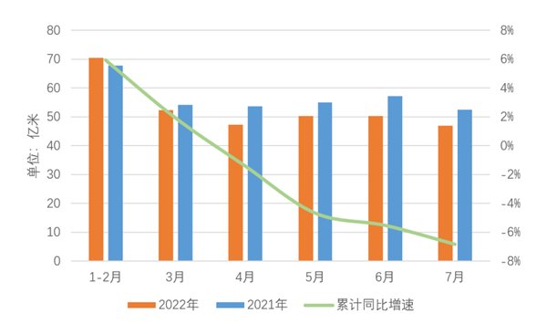图1 2022年1-7月规模以上企业印染布产量情况