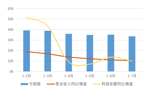 图2 2022年1-7月印染行业主要经济效益指标变化情况