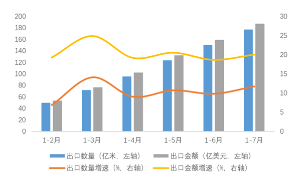 图3 2022年1-7月我国印染八大类产品出口情况
