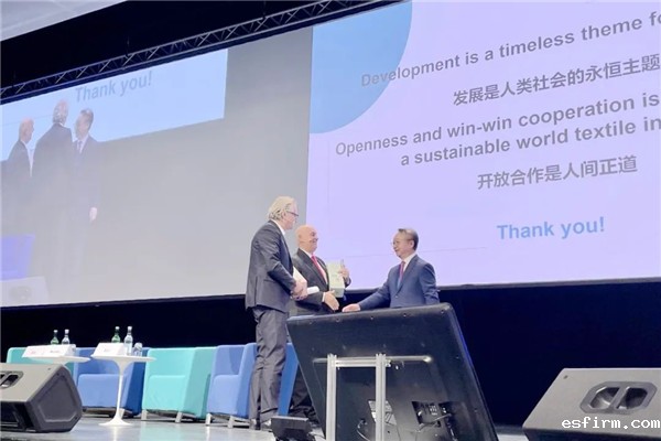 今年年会新增了“国际纺联奖项”颁奖环节。由东华大学和凯赛生物科技股份有限公司共同开展的项目——生物基聚酰胺56产业成套技术开发,获得国际纺联创新和可持续奖;由中国纺联等9家行业组织共同搭建的平台——STAR NETWORK,以及由上海元彩科技有限公司开发的合作项目——Coloro,获得国际纺联国际合作奖。