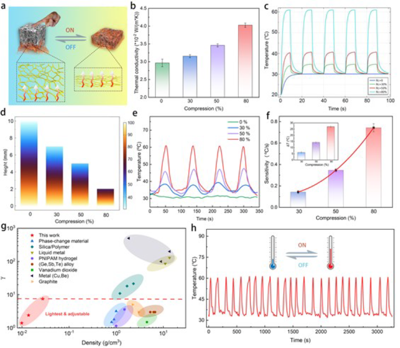 气凝胶作为一种低密度、低导热、高孔隙率、大比表面积的轻质材料,受到了越来越多关注。但由于气凝胶热流恒定,只能在单模态下进行保温。因此,能够潜在地改变气凝胶的导热性是未来发展方向之一。