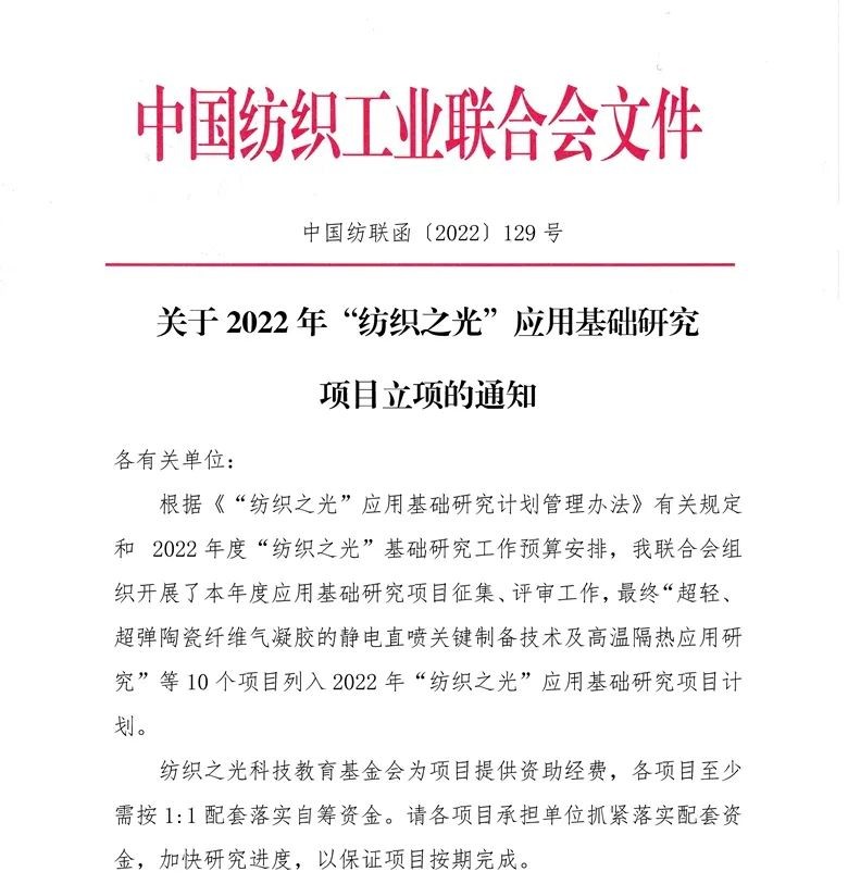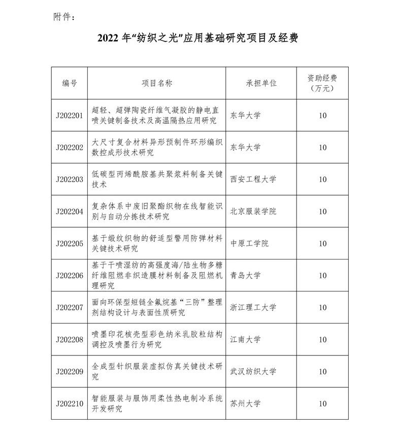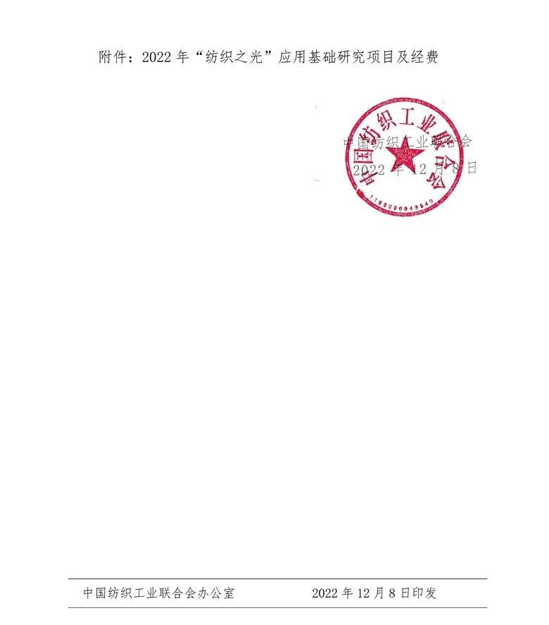 关于2022年“纺织之光”应用基础研究项目立项的通知