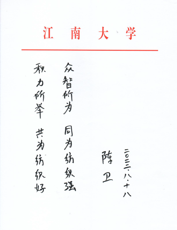 江南大学校长陈卫寄语纺织之光科技教育基金会开展行业教育奖励25周年