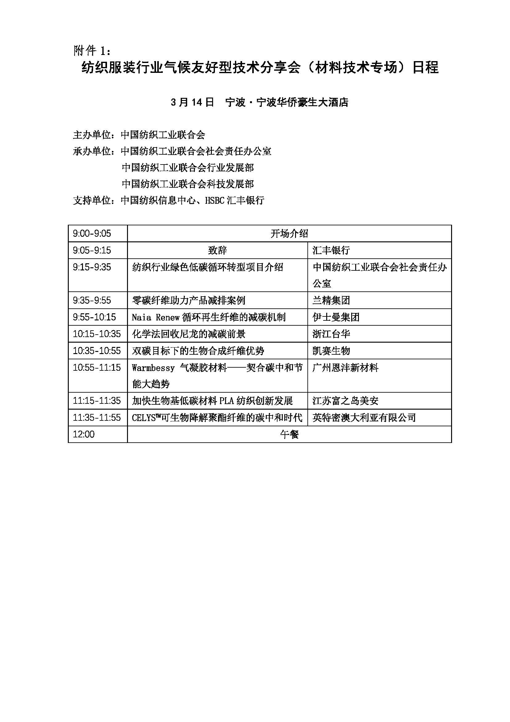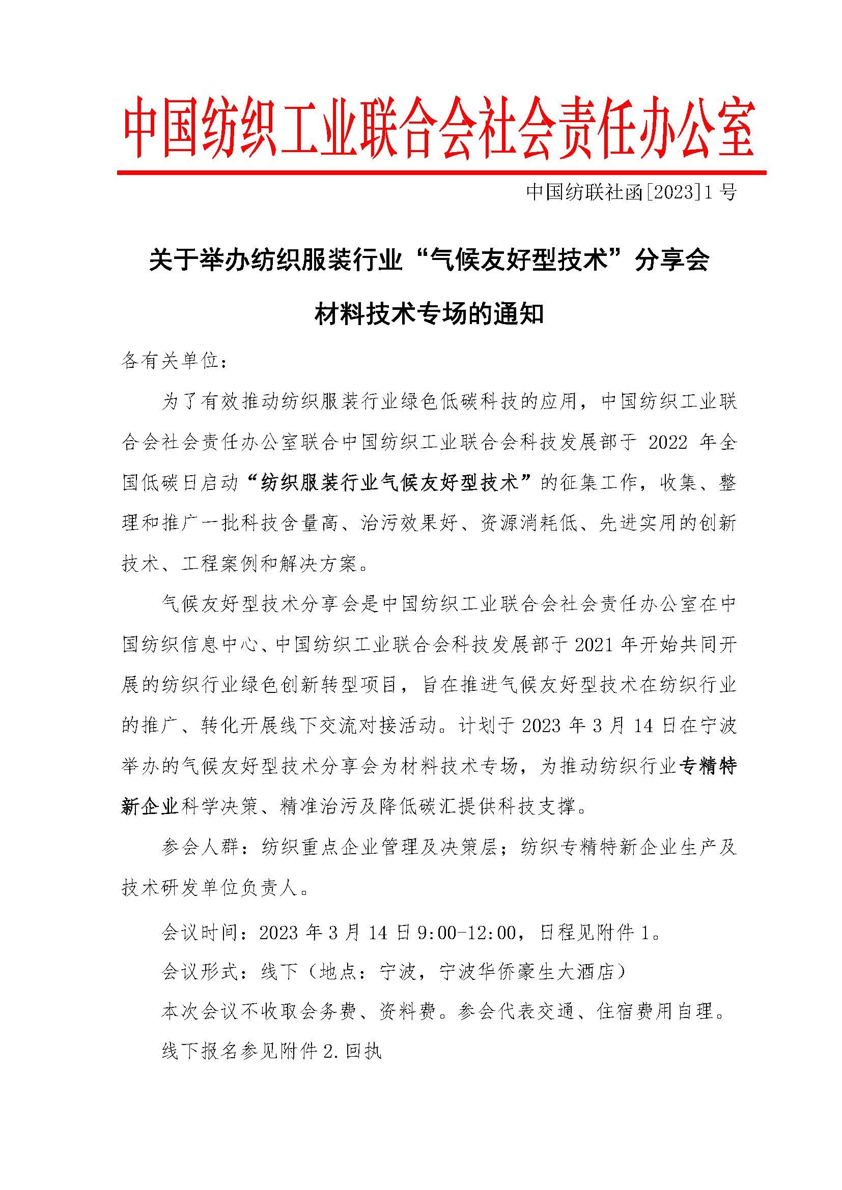 关于举办纺织服装行业“气候友好型技术”分享会 材料技术专场的通知