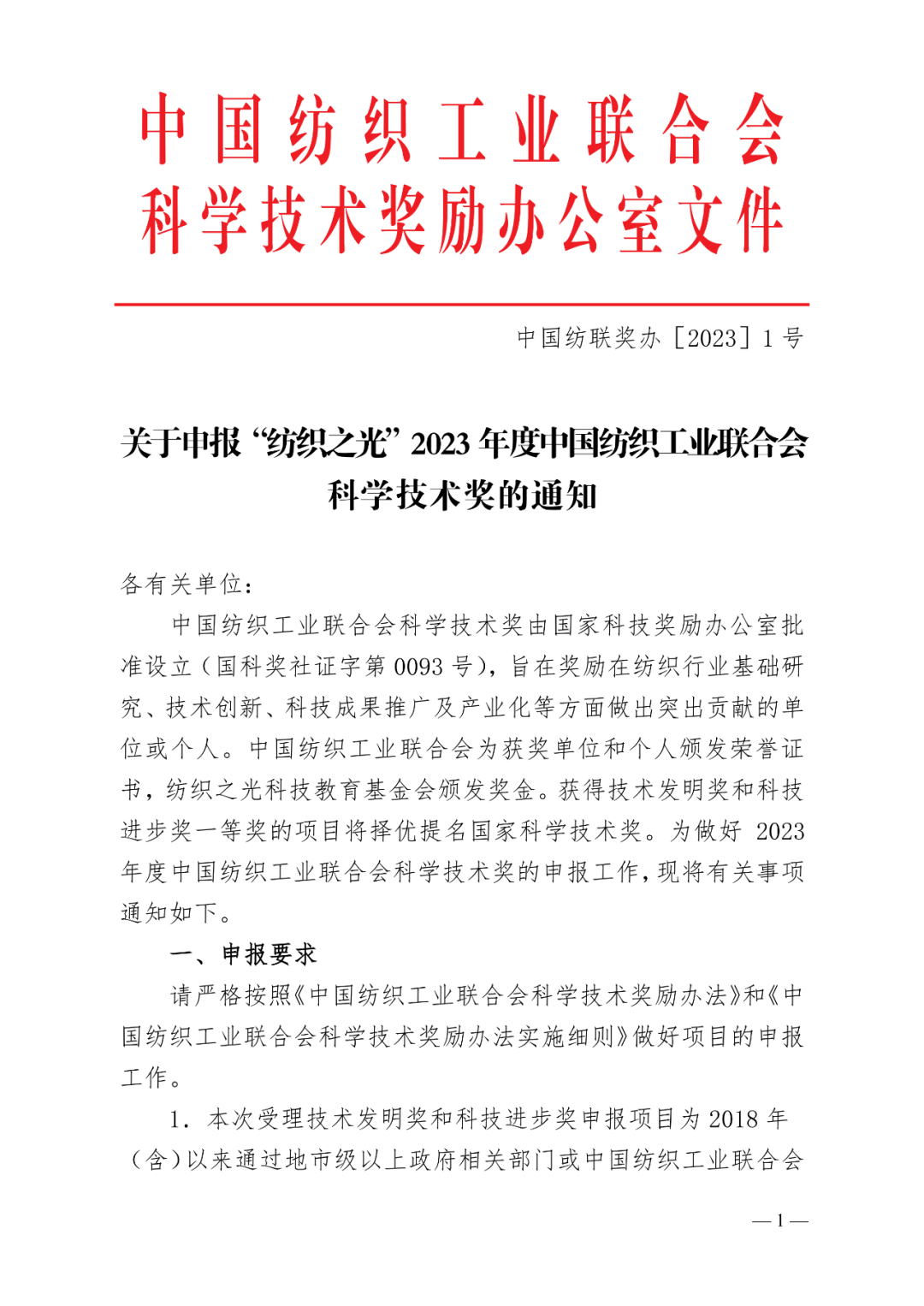 关于申报“纺织之光“2023年度伟德app官方正版下载地址科学技术奖的通知
