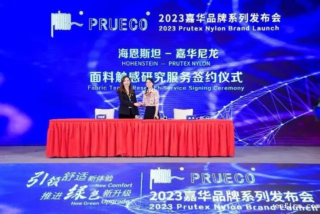 会上,PRUTAC®&PRUECO®2023嘉华系列品牌正式发布。同时,浙江嘉华特种尼龙有限公司与海恩斯坦纺织检验(上海)有限公司就“面料触感研究服务”战略合作进行了签约。双方的强强联合将为促进锦纶在纺织服装产品开发中的价值落地,提升锦纶产品在消费市场的认可度与影响力,确保新产品安全可靠地进入市场提供了有力支撑。