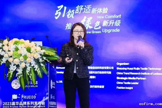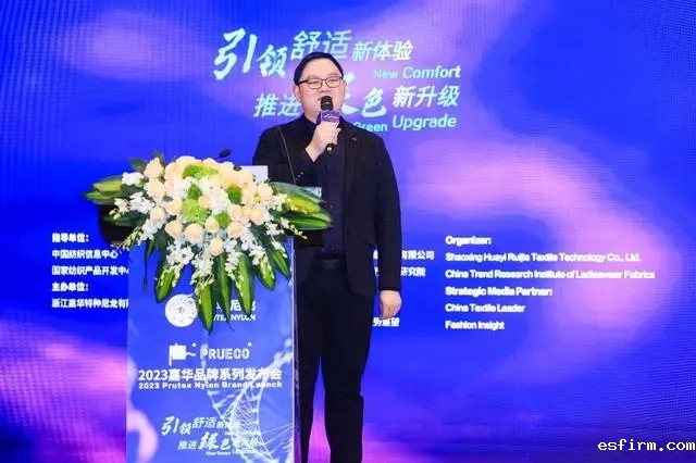 作为高端锦纶行业的佼佼者、引领者,浙江台华新材料股份有限公司集锦纶研发、纺丝、织造、染整及后整理于一体,是国内为数不多能够生产高档锦纶66 FDY产品的高新技术企业。“本次发布会以场景化发布PRUTAC® & PRUECO®,是希望以前沿技术、优质产品和最佳体验为产业生态带来解决方案,以纤维赋能纺织产业发展,成为创造美好生活的重要力量。”施清岛在致辞中表示,台华新材旗下的嘉华尼龙近20年来坚持产业创新和产品创新双轮驱动,不断推出多功能、绿色化产品和服务,尤其近期在谋划的锦纶66和锦纶再生材料的产业蓝图、技术路径和创新方向上取得了突破。企业将坚持为客户提供超值产品的服务,不断做优做强,争做国内纺织行业锦纶66技术的产品创新者和引领者,成为全球品牌和客户认可的再生锦纶优质供应商。