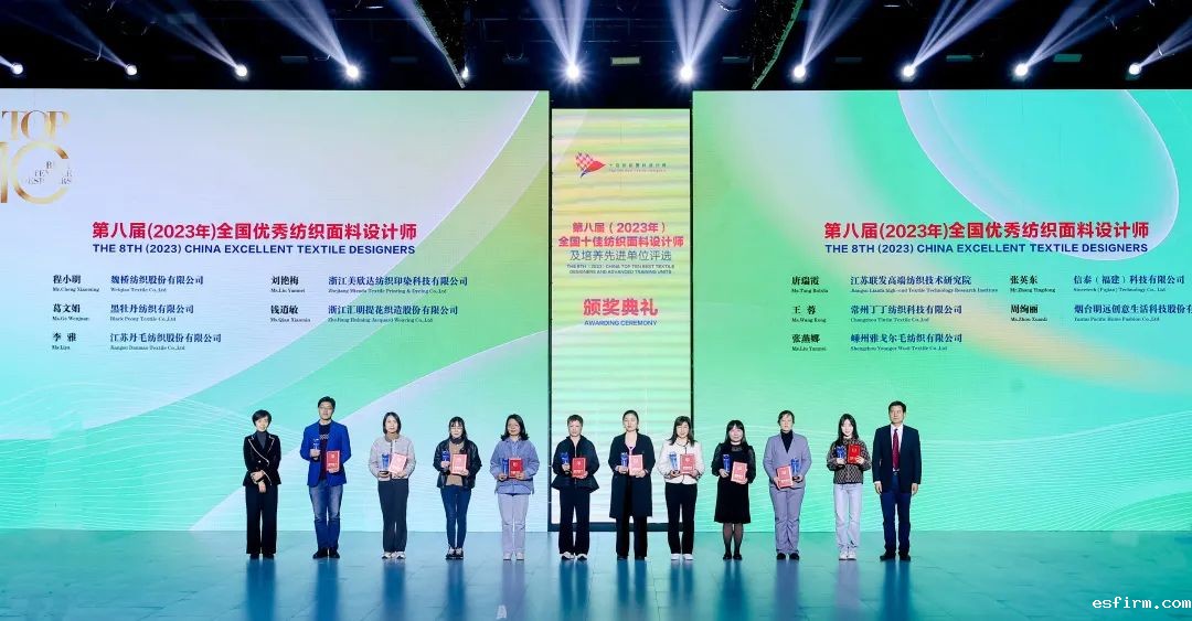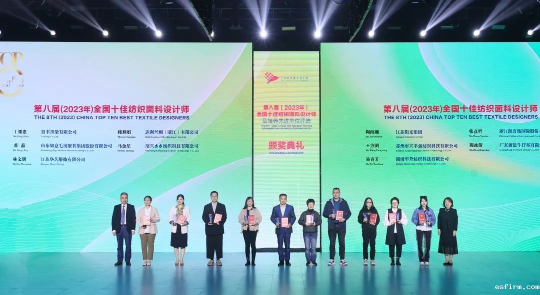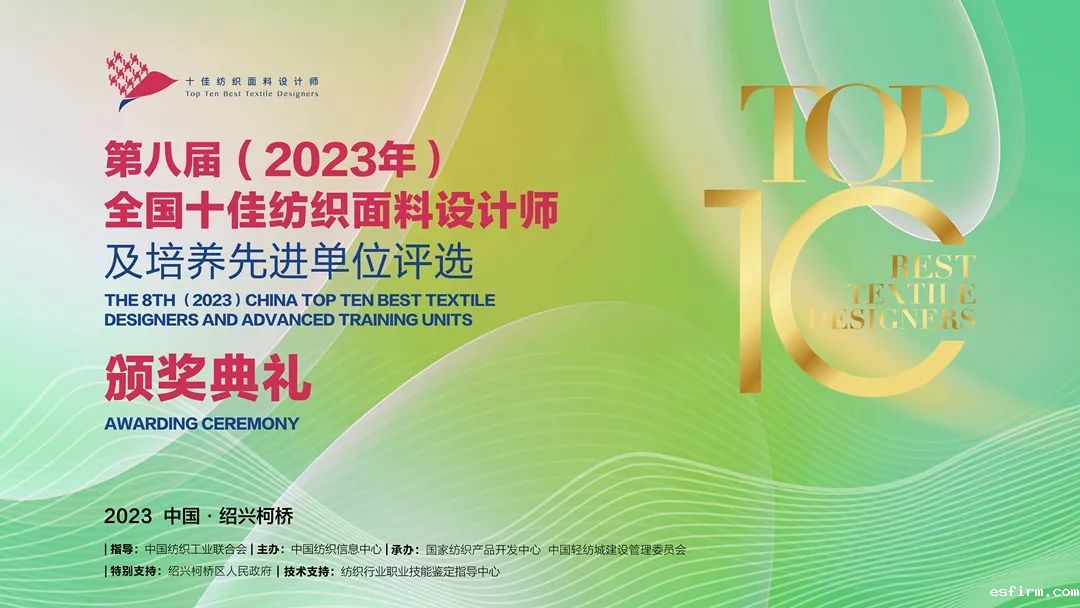 4月25日,第八届(2023年)全国十佳纺织面料设计师及培养先进单位评选颁奖典礼在2023柯桥时尚周(春季)启幕式上举行。“金柯桥”奖、全国十佳纺织面料设计师、全国优秀纺织面料设计师及全国纺织面料设计师培养先进单位获奖者齐聚浙江绍兴柯桥尽享殊荣一刻。