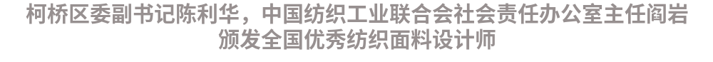 今年,全国十佳纺织面料设计师及培养先进单位评选活动再度携手柯桥,共同设立了全国纺织面料设计“金柯桥”奖1名。该奖项从“全国十佳纺织面料设计师”中产生,由全国前十强中综合得分第一名的设计师获得。“金柯桥”奖的设立不仅为纺织面料设计师的成长和发展提供了良好的产业土壤和创新平台,打造了高端纺织面料设计人才样板,也让越来越多的“时尚+设计”、“时尚+制造”、“时尚+服务”落地柯桥、服务行业,引领时尚流行趋势,促进时尚成果转化。
